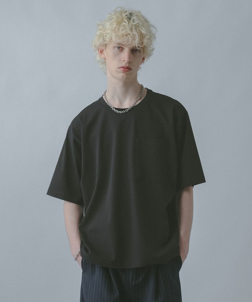 ーーー ポケットをあしらった滑らかな肌触りが魅力のミニマルなカットソー ーーー DESIGN ステッチを表に出さずに一体化したように見えるポケットをフロントにあしらったデザイン。 縫い合わせた部分が平面的に仕上がるフラットシーマ縫製で作成しており、縫い代の肌へのゴロつきが軽減するため着心地〇 装飾やディティールをそぎ落とすことで、素材の良さと立体感を際立たせるミニマルで綺麗な印象に。 身幅を広く取り、ゆったりとしたサイズ感に仕上げておりラフに着用できます。 MATERIAL 糸に丸みがあり、膨らみと反発感を持つ60番手の双糸で編み立てた超長綿天竺を使用しており、光沢感と滑らかさを併せ持つ綺麗な表面感に。 程よい厚みのあるしっかりとした生地感ですが、通気性の良い綿素材で涼しく着用できます。 ポリウレタンを混紡しており、ストレッチ性があるため、より着心地の良さを高めた一枚。
