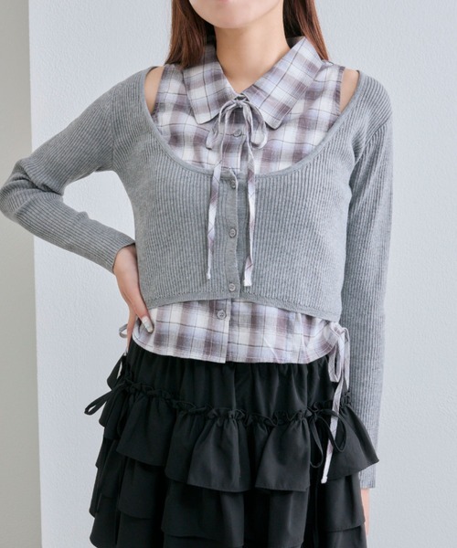 1枚でいろんな着こなしを楽しめるセットアイテム ■デザイン ・レイヤードスタイルが即完成するノースリーブシャツとニットカーディガンのセット。 ・ネクタイ、細リボン、何もつけずにシンプルに!その日の気分で楽しめるマルチWAY仕様です。 ・ニットカーディガンは、短めの丈でスタイルアップ効果も期待できます。 ・シャツのサイドにはドロストリボンが施され、絞り具合で丈感やシルエットを変えられます。 ・別々でも着れるので着方次第でオールシーズン活躍します。 ■カラー ・ブラウン/トップグレー/ブラックの3色展開 ■スタイリング ・ミニスカート合わせでプレッピーなガーリーコーデがおすすめ。 ・デニムパンツでカジュアルにまとめるのもかわいいです。 ・ノースリシャツは1枚で着たり、ニットカーデはキャミワンピースに羽織ったりなど着回し力抜群です。 ----------------------------- 裏地:なし 光沢感:なし 透け感:なし 伸縮性:シャツなし/カーディガンあり 手洗い:可能 タンブラー乾燥:不可 アイロン:カーデ不可/シャツ110℃まで ----------------------------- model:161cm ※着用、お取り扱いの際は、商品についている品質表示とアテンションタグを必ずご確認下さい。 ※ご覧のモニター環境や撮影環境により実際の商品と多少色味が異なって見える場合がございます。ご理解の程よろしくお願いいたします。 ※引っかけ注意 ・粗い組織のものや、表面に凹凸があってルーズな組織のもの 表面に糸が浮き出ているものは、ちょっとした不注意から引っかけてしまいがちです。 取り扱いの際は取り扱い絵表示確認の上、十分注意してください。 ・着用時にベルトや、バックや周囲の壁など表面の粗いものとの摩擦や引っかかりに注意してください。 ・水洗いやクリーニングの際にも他の物ものとの引っかかりに注意して下さい。 ■お気に入り登録のおすすめ 【気になるアイテムを登録】 ハートをクリックしてお気に入りに登録すると 完売カラーの再入荷やラスト1点の通知、セールの通知を受けとることができます。 【ブランドを登録】 新商品や再入荷、セール通知など、いち早くブランドの情報を受けとることができます。