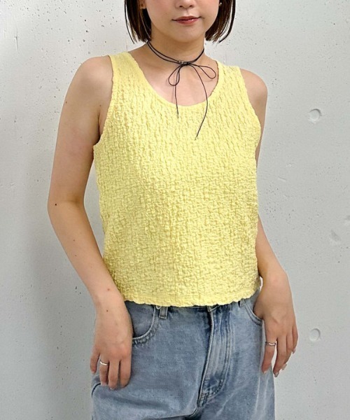 ■着映えるタンクトップ■ 一枚で決まるタンクトップ。 キャミワンピースのインナー使いとしても活躍します。 ポコポコとした表面感のあるジャガード生地はタンクトップにもこなれ感をプラス。 ややコンパクトな丈でスッキリと着こなせます。 首元は広く開いており、アクセサリーが映えるデザインに。 この夏はデニムやスウェットなどと一枚で着こなすのがおすすめ。 ーーーーーーーーーーーーーーー 透け感:なし 裏地:なし 伸縮性:あり 光沢感:なし 生地厚さ:普通 洗濯方法:洗濯可 ※詳しいお手入れ方法は商品についているタグをご覧ください ーーーーーーーーーーーーーーー ※ご利用のモニター環境により、実際の色味と多少異なる場合がございます。 … information … 欲しいitemをお気に入り登録(♡マークをclick) ・お買いのがし対策…完売itemの再入荷やラスト1点の情報をお知らせ ・欲しいitemをお得にget…pricedownになったらいち早くお知らせ ・スムーズ検索…ZOZOのお気に入りアイテムページで簡単checkできるから、再検索不要♪