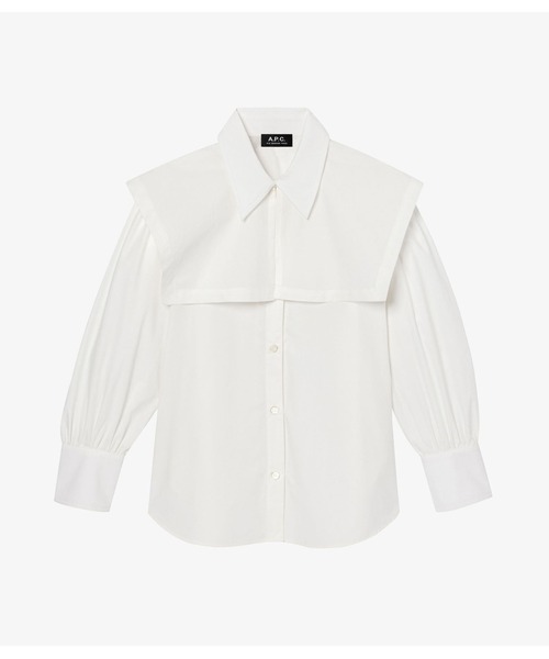 取り外し可能なケープ付ホワイトコットンシャツ.*ストレートカット.*取り外し可能なケープ付クラシックカラー.*七分袖.*貝ボタン.