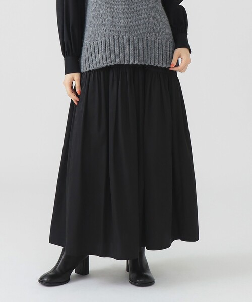 たっぷりボリュームデザイン■デザイン歩くたびに華やかに揺れるギャザースカートがアップデートして登場。ボリュームたっぷりのシルエットで女性らしさ引き立つひと品です。■コーディネート通年穿けるつるっとした生地、かつどんなトップスとも相性の良いシンプルなアイテム。秋冬は暖かみのあるローゲージニットやスウェットとのコーディネートがおすすめ◎。■サイズウエストをオールゴムに変更し、穿き心地が更にアップ。ヒップから裾にかけて緩やかに広がるゆとりのあるシルエット。■素材やや薄手で程良いハリのあるツイル素材。セミマットな質感で秋冬のムードにぴったりです。■ケア方法洗濯可(詳細は商品についている洗濯表示タグをご覧ください。)Model:H164 B76 W60 H89 Size:M※光の当たり具合やパソコンなどの閲覧環境によって実際の色味と異なって見える場合がございます。予めご了承ください。※商品の色味は商品単体で撮影した画像をご参照ください。◆お気に入り登録のおすすめ◆気になる商品には「お気に入り」登録がおすすめです!登録していただくと再入荷のお知らせやセール通知など、商品の最新情報が届きます。またマイページでいつでも確認が可能になります。お得な情報が届くこともありますので、是非ご活用ください。