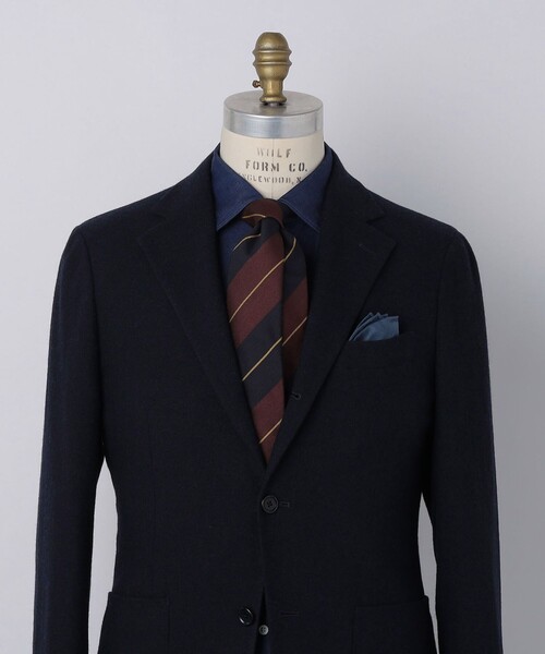 Puccini 柔らかな印象のブークレ生地を使用したレジメンタル柄のネクタイ 【素材特性/デザイン】 シルク100%のブークレヤーンを使用したネクタイです。 サテンやツイルとは違った膨らみ感があり、柔らかな上品さを演出することができます。 デザインはトラッドな印象を与えるレジメンタル柄。 配色に黒を使用するなど、アメリカ的なレジメンタルネクタイとは違ったモダンな印象の1本です。 ネクタイ裏面の縫い合わせのまつり縫いは手縫いで仕上げております。 【スタイリング】 ネイビーブレザーを使用したスタイリングがおすすめです。 シルク素材のネクタイではありますが、ブークレヤーン特有の柔らかな印象があるためサキソニー生地などの起毛素材との相性も良く、様々なスタイリングに合わせていただけます。 【Puccini 】(プッチーニ) SHIPSのエクスクルーシブブランドとして、2021FWシーズンよりスタートしたPuccini(プッチーニ)。 ブランド名は、日本が舞台となったオペラ“蝶々夫人”の作曲家であるジャコモ・プッチーニ氏に由来しています。 使用している生地はすべて、イタリアの老舗ファブリックメーカーFermo Fossati(フェルモ・フォッサーティ)が手掛けています。 縫製は、丁寧な作りと耐久性を追及すべく国内有数の縫製工場にてハンドメイドにこだわっています。 さらに、裏地は表地でも使えるほどのクオリティのものを採用し、毛芯も表地の素材感に合わせて変更するなど細部に至るまで徹底的にこだわり仕上げています。 SHIPSが考える、いつもの洋服に合わせるだけで新鮮に映る新しい提案として、オリジナリティ溢れる、唯一無二なタイブランドです。 【Fermo Fossati】(フェルモ・フォッサーティ) Fermo Fossati(フェルモ・フォッサーティ)は、1871年にイタリア・ロンバルディア州コーモ県タベルネーリオで創業したファブリックメーカーのブランド。 世界で最初に近代的なネクタイ用ファブリックの生産様式を確立させたことで知られており、イタリアで最も古いシルクファブリック工場で生産している生地は、作り込まれたディテールとエレガントさに定評があります。 現存する世界最古のシャトル織機を使用して紡織するフレスコでも高い評価を獲得しています。 【注意事項】 ※商品が届きましたらすぐに配送箱からお出しください。長時間そのままにしますとしわの原因となります。 ※「たるみ糸」は、大剣の裏側にある糸のことで、ネクタイを結ぶ際、この糸が動くことで力を分散させ、縫い糸とネクタイ自体の生地の破損を防ぎます。 内側に入り込んでいることもございます。ご了承ください。 ※末永く愛用頂く為に、アテンションタグ・洗濯ネームを必ずご確認の上、着用又はお取り扱いください。 ※撮影環境による光の当たり具合やパソコン・スマートフォンなどの閲覧環境によって、実際の色味と異なって見える場合があります。 商品の色味は商品単体で撮影した画像をご参照ください。 ※画像の商品はサンプルです。 実際の商品と仕様、加工、サイズが若干異なる場合がございます。