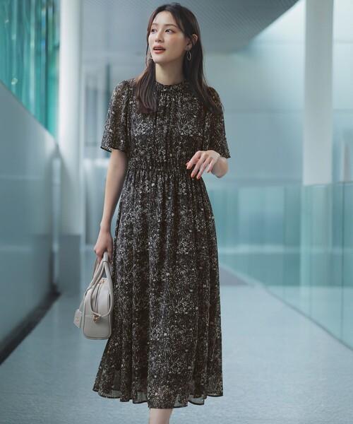 通勤シーンから普段使いにも! 甘さ控えめな上品フラワープリントワンピース ■デザイン ・通勤~デイリーにも使える小花柄ワンピース ・フィット&フレアのシルエットをウエストシャーリングでカジュアルダウン ・気になる二の腕周りを覆い、レディなムードを引き立てるフレア袖 ・三角マチのあて布付きで脇下もしっかりカバー ・華奢なスタンドカラーやはしごレースでクラシックな印象に ・甘さを控えめにした上品なラインフラワープリント ■仕様 ・総裏 ・ウエストゴム ■素材 ・シアー感がありさらっと軽く優しい印象のシフォン素材 ・伸縮性と柔らかさが特徴のトリコット裏地を使用 ■機能性 ・ウォッシャブル ■おすすめコーディネート 一枚で素敵に決まる華やかな印象のワンピース。コンパクトな丈感のカーディガンとも好相性です。 こちらの商品はサイズバリエーションがございます。 Rレギュラーサイズ(OPWPGA0880) S小さいサイズ(OPWQGA0880) L大きいサイズ(OPWKGA0880) ※商品画像はサンプルを使用しているため、色味やサイズ等の仕様に変更がある場合がございますので、予めご了承ください。 ※屋外での撮影画像は、光の加減で色味が違って見える場合がございます。商品の色味はスタジオ撮影の画像をご参照ください。 #anySiS #エニシス #エニィシス #エニスィス #レディース #ワンピース #フレア #花柄 #フラワープリント #スタンドカラー #シフォン #透け感 #シアー #上品 #フェミニン #おでかけ #通勤 #オフィス #オフィスカジュアル #洗える #ウォッシャブル 洗濯表示 【本体のみ】40℃まで弱洗濯可 塩素系漂白不可 タンブル乾燥不可 日陰つり干し乾燥 アイロンは160℃まで ドライクリーニング(石油系)可 弱いウェットクリーニング可