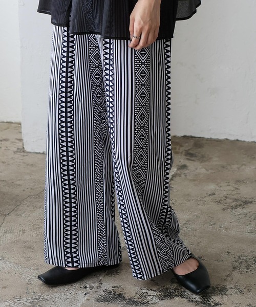 【デザイン】 スムースタッチ総柄ロングパンツ 10柄から選べる!スムースタッチのゆったりロングパンツ。 オン・オフ問わず活躍する、リラクシーな着心地のロングパンツ。 軽くて柔らかな肌触りのスムースタッチ素材を使用し、包み込まれるような着心地を実現。 丈感はやや長めで、落ち感のあるシルエットが大人っぽい印象に。 選べる10種類の総柄デザインで、おうち時間もお気に入りの一枚で気分UP。 ウエストはゴム仕様で、着脱もスムーズ。 ルームウェアとしてはもちろん、きれいめトップスや小物と合わせて、ワンマイルウェアとしても◎ コンパクトに畳めるので、旅行やキャンプ、ルームパーティにもおすすめの一枚です。 【サイズ等】 サイズ:FREE 総丈:109cm 股上:37cm 股下:73cm ウエスト(平置き×2):63cm ヒップ(平置き×2):120cm わたり幅:34cm 裾幅:29cm 重量:165g 素材:レーヨン100% …………………… 伸縮性:なし 裏地:なし 透け感:B・C・I・J若干あり/その他カラーなし 生地の厚さ:普通 ポケット:なし …………………… ※製造工程の都合上、カラーによって総丈にわずかな差が生じる場合がございます。 できる限り均一になるよう努めておりますが、あらかじめご了承くださいますようお願いいたします。 【お取り扱い上の御注意】 ・繊維および染料の性質上、汗や水で濡れますと色落ちすることがあります。 ・水を含むと縮みやすい為、長時間水の浸漬や浸置はさけ、選択後は直ちに整形し干してください。 ・漂白剤や蛍光剤の入った洗剤は使用しないでください。 ・家庭洗濯時タンブル乾燥はお避け下さい。 [カラー] A・B・C・D・E・F・G・H・I・J G着用モデル身長:164cm/着用サイズ:FREE G除くカラー着用モデル身長:169cm/着用サイズ:FREE ◆商品のお気に入り登録◆ 完売カラーの再入荷通知や、ラスト1点の通知、 セールの通知も受け取ることができますので、是非ご登録ください。 ◆ブランドのお気に入り登録◆ 新商品や再入荷などの情報を受け取ることができますので、是非ご登録ください。