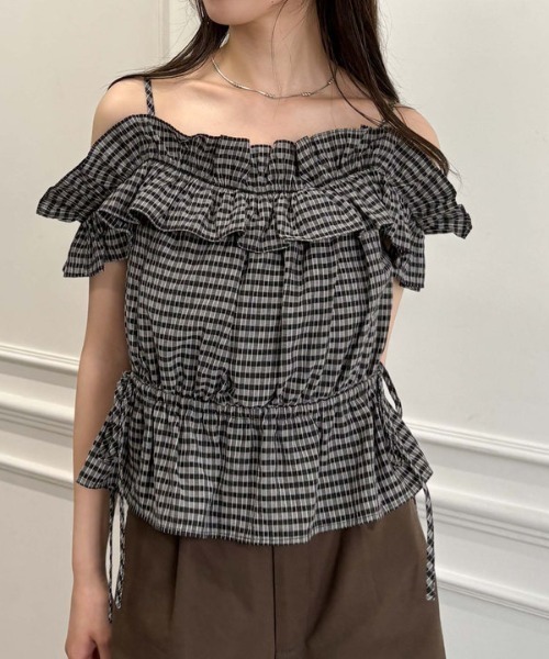■チェックで夏のガーリー気分を上げる■ ガーリーな気分を上げてくれるチェックブラウス。 柔らかいカラーで少し大人っぽく着こなせます。 オフショルの肩出しがヘルシーな印象に。 肩ひもが付いているのでオフショル部分が落ちてくることもありません。 またゴムが入っているので締め付け感もなし。 胸下のひもを縛れるので好きなシルエットに変えて着て頂けます。 しっかりめに絞るとスタイルアップも◎ デザインがしっかりとあるのでデニムでシンプルに合わせるのがおすすめ。 ーーーーーーーーーーーーーーー 透け感:なし 裏地:なし 伸縮性:あり 光沢感:なし 生地厚さ:普通 洗濯方法:洗濯可 ※詳しいお手入れ方法は商品についているタグをご覧ください ーーーーーーーーーーーーーーー ※ご利用のモニター環境により、実際の色味と多少異なる場合がございます。 … information … 欲しいitemをお気に入り登録(♡マークをclick) ・お買いのがし対策…完売itemの再入荷やラスト1点の情報をお知らせ ・欲しいitemをお得にget…pricedownになったらいち早くお知らせ ・スムーズ検索…ZOZOのお気に入りアイテムページで簡単checkできるから、再検索不要♪