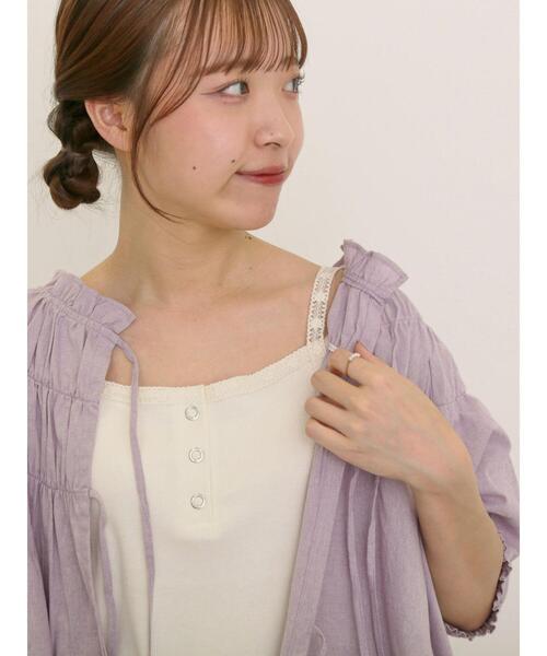 メローなレイヤード風の裾とレース使いが可愛らしいキャミソール。 胸のボタンもさりげないアクセントをプラス。 肌触りの良いリブカットソー生地で、さらりと快適に着用することができます。 シンプルに着るのはもちろん、レイヤードコーデとしても活躍してくれるアイテムです。 ※商品画像は、撮影環境やお客様のご利用のPC・スマートフォンのモニター環境などにより実物と色味に差異がある場合がございます。