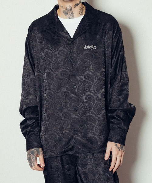【Subciety(サブサエティ)】ペイズリー柄のジャカード生地を採用したオープンカラーシャツ-デザイン-トラディショナルな開襟シャツのディティールを残しつつ、身幅・アームホールにゆとりを持たせたストレスフリーなシルエット。ハリ感のある高密度ペイズリー柄ジャカード生地を採用。ほどよい光沢感と細かく表現されたペイズリー模様がマッチし、高級感を演出します。左胸にはブランドネームを流れるような書体でアレンジした『Stream』のロゴグラフィックを刺繍で施しました。アクセントとして同ロゴのピスネームを身頃脇に配備。Paisley baggy slacks (105-01970) とセットアップで着用可能。-生地-ハリ感のある高密度ペイズリー柄ジャカード生地を採用▼商品のお気に入り登録完売カラーの再入荷通知や、ラスト1点の通知、セールの通知も受け取ることができます。▼ブランドのお気に入り登録新商品や再入荷等、いち早くブランドのお得な情報を受け取ることができます。
