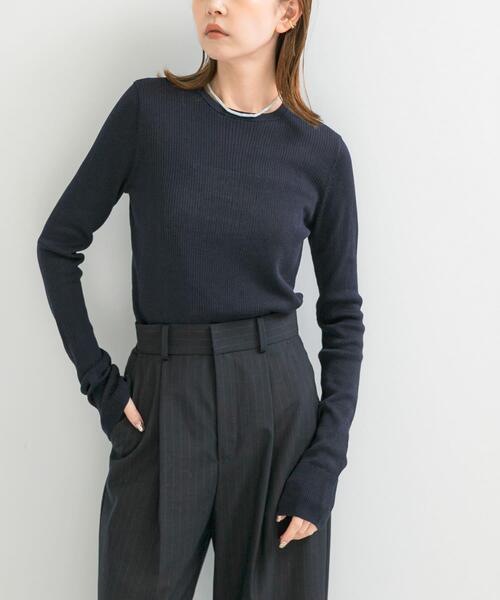 【上質なシルク混が着心地抜群のデザインニット】綿×シルクの上質なブレンド素材で仕立てた、しなやかで着心地の良いリブニット。綿のナチュラルな肌触りに、シルク特有の滑らかさがプラスされ、シンプルながらも上品な印象に仕上げました。やや長めのお袖がアクセントになり、ジャケットなどのインナーとしてもお勧め。体に優しくフィットするコンパクトなシルエットは、レイヤードスタイルにもすっきりと合わせていただけます。ON/OFFで活躍するワードローブに欠かせない一着です。【2025 Autumn/Winter】【25AW】総重量 : 約145g洗濯方法 : 手洗い, ドライクリーニング※商品画像は、光の当たり具合やパソコンなどの閲覧環境により、実際の色味と異なって見える場合がございます。予めご了承ください。※商品の色味の目安は、商品単体の画像をご参照ください。▼お気に入り登録のおすすめ▼お気に入り登録商品は、マイページにて現在の価格情報や在庫状況の確認が可能です。お買い物リストの管理に是非ご利用ください。素材感透け感 : ややあり伸縮性 : あり裏地 : なし光沢 : なしポケット : なしFREE