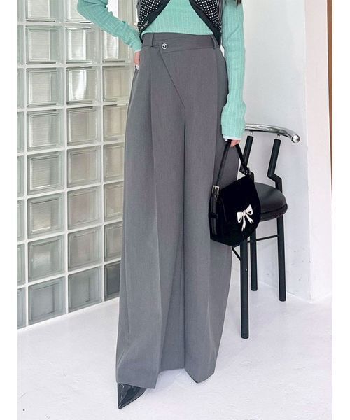 【モードなディテールを効かせたタックワイドパンツ】 【Design/Styling】 すっきりと美しいワイドシルエットが魅力の「LILY BROWN」のタックパンツ。アシンメトリーなウエストデザインに加え、ちらりと覗く飾りボタンが今季らしいモードなエッセンスを添えます。ウエスト裏にはマーベルトを配し、内側にさり気なくゴムを仕込むことで心地よくフィットする設計に。ベーシックでありながら、装いにひとさじの個性を加えてくれる一本です。 【Fabric】 適度なハリと落ち感を兼ね備えた素材を使用し、美しいシルエットをキープ。長時間の着用でも快適な履き心地で、デイリーに頼れる仕上がりです。 透け感;なし 裏地;あり 伸縮性;ややあり 光沢感;なし 生地の厚さ;普通 ※照明の関係により、実際よりも色味が違って見える場合があります。 またパソコン・スマートフォンなどの環境により、若干製品と画像のカラーが異なる場合もございます。予めご了承ください。 商品の色味は、商品単品画像をご参照下さい。 ※商品画像はサンプルのため、色味やサイズ等の仕様に変更がある場合がございますので、予めご了承ください。