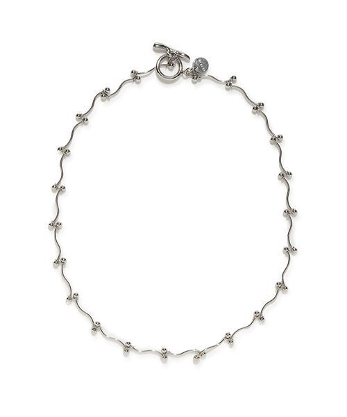 【デコルテに映える逸品。ウェーブを描くパーツが顔まわりを優しく囲むチョーカー】 【Design/Styling】 特徴的なウェービーなパーツと、ボールのようなパーツが組み合わさったチョーカー。 鎖骨下くらいの使いやすい長さで、顔周りが一気に華やぐデザインです。デコルテもキレイに見せてくれます。 大きめの留め具は使いやすく、デザインポイントにもなっています。 スパークリングネックレス(FWGA254332)との重ね付けもおすすめです。 カラーは、シャープな印象のSLVと、肌馴染みのよいGLDの2色で展開。シーズンを問わず活躍してくれます。 ※照明の関係により、実際よりも色味が違って見える場合があります。 またパソコン・スマートフォンなどの環境により、若干製品と画像のカラーが異なる場合もございます。予めご了承ください。 商品の色味は、商品単品画像をご参照下さい。 ※商品画像はサンプルのため、色味やサイズ等の仕様に変更がある場合がございますので、予めご了承ください。