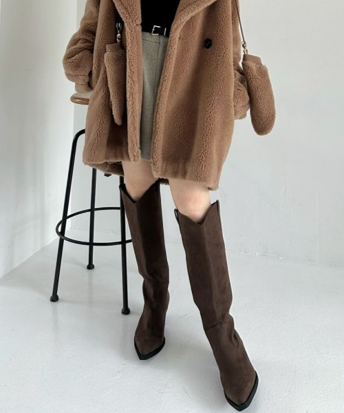 【ウエスタンがさりげなく香る、シンプルモードなブーツ。脚をきれいに見せる工夫も】【Design/Styling】トレンドのウエスタンブーツの要素を取り入れつつ、装飾をミニマルかつシンプルにそぎ落とした新作。洗練された印象を与える、モードなデザインに仕上げています。足首からふくらはぎにかけてのラインを美しく見せつつ、あえてファスナーをつけずに着脱が容易にできるように、すらりとした筒のバランスを工夫。また、歩きやすさとスタイルアップを兼ね備えた程よいヒールの高さ4.7cmを採用しました。快適な履き心地も追究しており、クッション性の高いインソールや柔らかな裏地を採用。長時間の着用でも疲れにくい仕様です。デニムやスカート、ワンピースなど、さまざまなコーディネートに合わせやすく幅広いシーンで活躍します。カラーは2色をご用意。トレンドライクなスエード調のBRW、ベーシックなスムースレザー調がモードなGBLKで展開しています。※照明の関係により、実際よりも色味が違って見える場合があります。またパソコン・スマートフォンなどの環境により、若干製品と画像のカラーが異なる場合もございます。予めご了承ください。商品の色味は、商品単品画像をご参照下さい。※商品画像はサンプルのため、色味やサイズ等の仕様に変更がある場合がございますので、予めご了承ください。