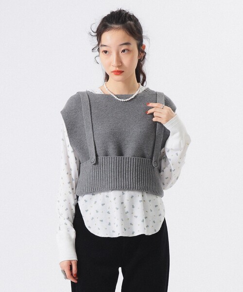 スタイル自在!着こなし遊べる万能ベスト■デザイン〈BEAMS BOY(ビームスボーイ)〉では定番のミリタリーニットベストが今シーズンもアップデートして登場。40年代のレッドクロスイメージソースに、様々な着こなしを楽しめるデザインを企画しました。ニットベストの長いリブを表側に折り返して肩にかけ、短丈ベストとしても着こなしていただけます。さらに前後着用可ですので、いろんなスタイルを楽しんでいただきたい一着。■コーディネートカットソーやシャツ、タートルネックなどカジュアルスタイルのアクセントになるアイテム。ミリタリーパンツと合わせて統一感を持たせるスタイルや敢えてフェミニンなワンピースに合わせるのもおすすめ。■サイズアームが広く開いており、幅広くレイヤードがお楽しみいただけます。■素材綿ウールの糸を1本と、ウール/ナイロン/アクリルの糸を2本引き揃えて編地を作り、表情に奥行きと微妙な色ムラや陰影が出しました。コットンは、サラリとしたドライな肌ざわりとハリが魅力、ウールは暖かく弾力があるのが特徴です。前身頃と後身頃で編地を変えているのもこだわりポイントです。■ケア方法ドライクリーニングのみ可(詳細は商品についている品質表示ラベルをご覧ください)生地の厚さ:普通透け感:なし伸縮性:ややあり光沢感:なし裏地:なし【スタッフレビュー】スタッフ:木村 梨香身長:156cm / 普段サイズ:M / 着用サイズ:ONE SIZE骨格タイプ:ウェーブサイズ感: 伸縮性があり、身体に沿う細身のサイズ感。素材感: とても軽い着心地で、チクチク感がなく肌に触れても気になりません。ポイント: 前後と着丈を変えて着れるので、色々なアイテムと相性良く合わせられます。※光の当たり具合やパソコンなどの閲覧環境によって、実際の色味と異なって見える場合がございます。予めご了承ください。※商品の色味は商品単体で撮影した画像をご参照ください。
