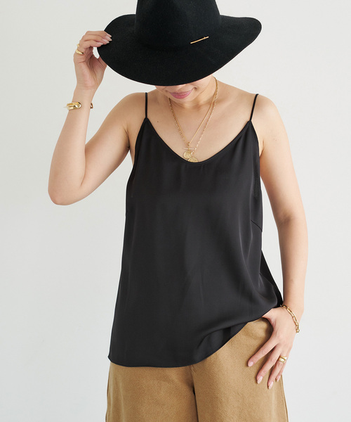 リッチでリラクシーなシルクサテンキャミソールが待望の再入荷。 艶やかで気品漂う新色のブラックが登場。 撫でるように滑らかに触れる質感が特徴のシルクストレッチ生地。 シルクならではの上品な光沢が華やかなムードを醸し出します。 タッチはさらりとしていて肌離れがよく、夏でも心地良く快適に着用して頂けます。 繊細に作られたキャミソールが美しく、ジャケットやカーディガンのインナーに華やかさをプラスします。 ※同一商品(ブラウンのみ):25051500408010(若干の仕様変更がある場合がございます。) ※シルクは特性として、白化しやすい素材です。生地が白っぽくなるのは、摩擦による繊維の毛羽立ちなどが原因です。連日の着用や、強い摩擦が加わる場面での着用はお避け下さい。 ウォッシャブルシルクですが、洗う際はつまみ洗いや、もみ洗いは避けて下さい。 ※繊細な素材のため引っ掛けにはご注意ください。 ※取り扱いについては、商品についている洗濯表示にてご確認下さい。 ※照明の関係により、実際よりも色味が違って見える場合があります またパソコン・スマートフォンなどの環境により、若干製品と画像のカラーが異なる場合もございます。 ※商品の色味は、商品アップ画像をご参照ください。 ※こちらの商品はお一人様1カラー・1サイズにつき1点までの購入とさせていただきます。 本体:手洗い可能