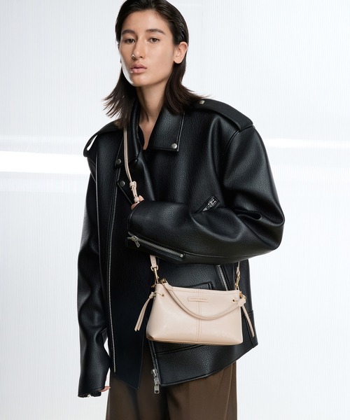 しわ加工が施された風合い豊かなレザー調素材に、アイレットディテールとノット付きタッセルをあしらった、さりげなく個性を添えてくれる一品。コンパクトなボディながら、マチがしっかりとあるため、スマートフォンやミニ財布、リップなどの必需品をすっきりと収納できます。トップハンドルで手持ちとして使えるほか、取り外し・長さ調節可能なショルダーストラップに付け替えればクロスボディとしても楽しめ、シーンやスタイリングに合わせて自由にアレンジ可能。軽量で持ち運びやすく、デイリーから休日のお出かけ、旅行まで幅広く活躍する万能バッグです。