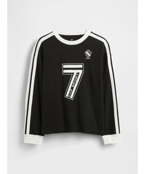 優しく心地良い肌触りのコットンジャージーグラフィックTシャツ クルーネック、襟に施されたコントラストの効いたパイピング 長袖、サイドにダブルストライプ柄、袖口リブ フロントにGAPロゴとサッカージャージースタイルグラフィック、バリエーションあり この商品は、RISE (Reimagining Industry to Support Equality) を通じてジェンダー平等と女性のエンパワーメントを精力的に推進する工場で生産されています。 フィット: オーバーサイズ、ルーズフィット すっきりとしたフィットがお好みの方には1~2段階のサイズダウンをおすすめします。 *商品タグに記載の価格とサイト上の販売価格が異なる事があります。 【Gap ギャップ】1969年にアメリカ・サンフランシスコで創業以来、世界的なカジュアルファッションブランドとして、常にモダンなアメリカンカジュアルを提案し続けています。 ※商品画像は、光の当たり具合やパソコンなどの閲覧環境により、実際の色味と異なって見える場合がございます。予めご了承ください。