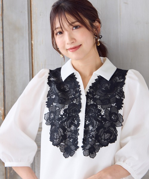 【Hand wash OK】一枚で華やぐ、フロントをケミカルレースで切り替えた着映え力の高いチュニック丈ブラウス。程よい厚みとハリ感のあるオーガンジー素材を使用し、シルエットを美しくキープ。ややフレアに広がる長め丈で、体型カバーにもなるすっきりデザインです。オフホワイトとネイビーの全2色。************************************生地感: 普通伸縮性: なし透け感: 若干あり裏 地: 袖のみ裏なし洗 濯: 水洗い可************************************モデル身長: 166cm/ 38号着用詳細着用モデル身長 166cm / 着用サイズ 38号*取り扱いについては、商品についている品質表示でご確認ください。*撮影環境により、実際と色味が違って見える場合があります。また、PC・スマートフォンなどにより、製品と画像のカラーが異なる場合もございます。*商品画像はサンプルのため、色味やサイズ、プリント位置、仕様などに変更がある場合があります。*50号は一部の店舗・ONLINE SHOPのみの展開となります。取扱いしていないサイトもございますのでご了承ください。【RoseTiara/ローズティアラ】フェミニンな愛らしさと、大人のエレガンスを一度にまとう服。「可愛い」をずっと手放さない、あなたのためのブランドです。素材選びからデザイン、パターンまでを一貫して行い、タックの向きやギャザー分量、フリル位置などを36・38・40号と42・46・50号では調整し、パターンを分けることで美しいシルエットと着心地の良い服を提案します。