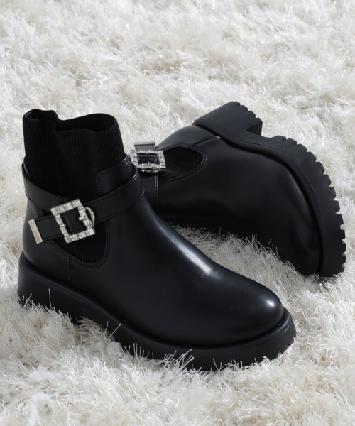 筒まわりをリブニット素材で切り替えたショートブーツリブニット素材が優しく足にフィットし、すっきりと華奢見えを叶えます。シンプルで合わせやすいデザインに、取り外しできるビジューバックルベルトがハードすぎず、フェミニンコーデにも合う女性らしい1足に。トレンド感のあるトラックソールをポイントに、程よいボリュームとヒールでスタイルアップも叶います。同色のハイソックス合わせもお勧めです。※撮影時照明の関係により、色味が違って見える場合がございます。またパソコン・スマートフォンなどの環境により、若干製品と画像のカラーが異なる場合もございます。予めご了承ください。商品の色味は、商品単品画像をご参照下さい。※商品画像はサンプルのため、色味やサイズ等の仕様に変更がある場合がございますので、予めご了承ください。◆お買い物をよりお楽しみいただくために◆・「商品のお気に入り登録」で完売カラーの再入荷やラスト1点、セール通知を受け取ることができます。・「ブランドのお気に入り登録」で新商品の入荷情報など、いち早く受け取ることができます。
