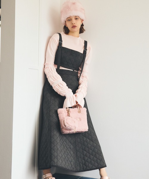 ワーク風の薄手中綿入りのキルティング加工生地で作成したジャンパースカート。少しハードな印象ながら、ウエスト部分の肌見せ仕様とスカートの綺麗に広がるフレアによってフェミニンな着こなしができます。インナーに合わせるものによって雰囲気が変化し、ウエスト部分は取り外せるのでビスチェとスカート別々で着用可能。何通りものコーディネートが楽しめるマルチなアイテムです。透け感;なし裏地;あり伸縮性;なし光沢感;なし生地の厚さ;普通※照明の関係により、実際よりも色味が違って見える場合があります。またパソコン・スマートフォンなどの環境により、若干製品と画像のカラーが異なる場合もございます。予めご了承ください。商品の色味は、商品単品画像をご参照下さい。 ※商品画像はサンプルのため、色味やサイズ等の仕様に変更がある場合がございますので、予めご了承ください。