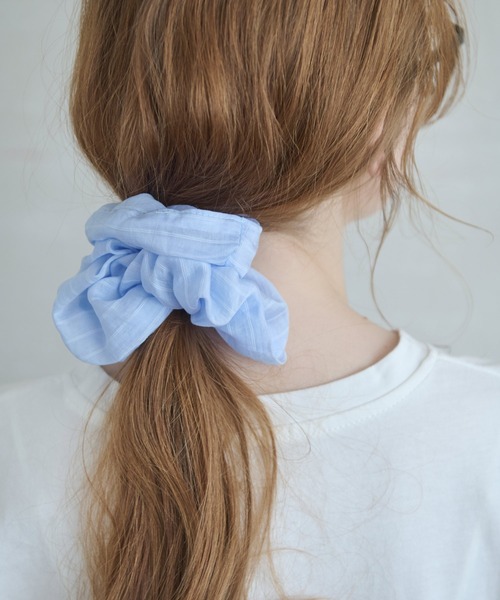 【シアー素材が爽やかな夏にぴったりのストライプシュシュ】 ・ベーシックながらも季節感のあるシアー素材を使用 ・存在感のあるエアリーなシルエットがアクセント ・程よい弾力のゴムが髪を優しくホールド ~スタイリング~ いつものポニーテールやサイドポニー、お団子ヘアに合わせるだけでこなれ感をプラス。 手首につけるだけでもコーデのポイントになります。 同素材のシアーシャツと合わせても統一感がありおすすめです。 ※着用、お取り扱いの際は、商品についている品質表示とアテンションタグを必ずご確認下さい。 ●シリーズ展開もご用意してあります。 ストライプシアーオーバーシャツ[c1k3620b] 小物/ヘアアクセ/カラー小物