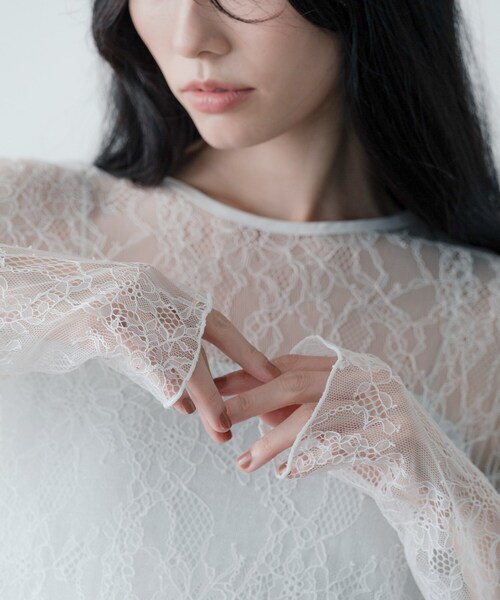 Design Pointレースとチュールの組み合わせが魅力的なカットソー。透け感のある袖とバックスタイルのデザインで、肌見せのバランスが絶妙。ディテールにこだわり、スタイリッシュな印象を与えます。Styling Pointモードなスラックスなどシンプルなボトムスとの組み合わせで、甘さを抑えたスタイリングがおすすめ。ジレやジャケットのインナーとしても活躍するアイテムで、シンプルながらも特別な存在感を放つ一枚です。Fabric Point軽やかで繊細なレース素材を使用。デイリー使いから特別なシーンまで幅広く活躍します。モデル身長:174cm 着用サイズ:38(M)*****************************気になるアイテムは【お気に入り登録】がおすすめ!気になるアイテムのページにある「ハートマーク」をクリックして簡単に追加できます。登録すると、再入荷通知やお値下げ情報をメルマガにてお知らせ!マイページにてお気に入り一覧もチェックできます。*****************************※照明の関係により、実際よりも色味が違って見える場合があります。また、パソコン・スマートフォンなどの環境により、若干製品と画像のカラーが異なる場合もございます。店舗へのお問い合わせ商品番号:523-13003●製品寸法:38(M):着丈58cm B91cm 袖丈67cm 肩幅37cm備考: