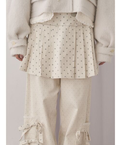 ※前着丈が3cm短くなります。 ※オフホワイトの生産分は、トグルボタン付近の生地色が ボディ生地に合わせたオフホワイトに変更になります。 31枚目以降のお写真をご参照ください。 ■デザイン トレンドのドットデザインとトグルボタンが特徴のプリーツスカート。 ウエスト部分がすっきり見えるよう工夫したシルエットで、 ドットの配色もmerryっぽく淡い展開でご用意してみました〇 ■サイズ感 後ろゴムでヒップを拾わないフレアなプリーツシルエットです。 ■スタイリング ニットトップスやスウェットとの合わせはもちろん、 同素材のパンツをレイヤードしてスカパン見せするのもオススメです。 【商品情報】 透け感:なし 裏地:あり 伸縮性:なし 光沢感:なし 生地の厚さ:普通 【商品のお気に入り登録】 ♡をクリック! 完売カラーの再入荷や、ラスト1点の通知、 セールの際の通知も受け取ることができます。 【ブランドのお気に入り登録】 新商品や再入荷など、 merryの情報をいち早くお知らせします! ぜひご登録ください♡