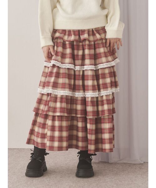 ■デザイントレンドのティアードフリルを5段たっぷり使用したチェックティアードスカート〇少しレトロな雰囲気のあるチェック生地が可愛く、微起毛なので冬のシーズンに着回し力抜群となっています。■サイズ感ウエストぐるりゴムで履き心地の良いらくちんスカートとなっています。■スタイリングゆったりとしたトップスとの合わせはもちろん、コンパクトなアイテムと合わせてボリュームを際立たせるスタイルもおすすめです〇【商品情報】透け感:なし裏地:あり伸縮性:なし光沢感:なし生地の厚さ:普通【商品のお気に入り登録】♡をクリック!完売カラーの再入荷や、ラスト1点の通知、セールの際の通知も受け取ることができます。【ブランドのお気に入り登録】新商品や再入荷など、merryの情報をいち早くお知らせします!ぜひご登録ください♡
