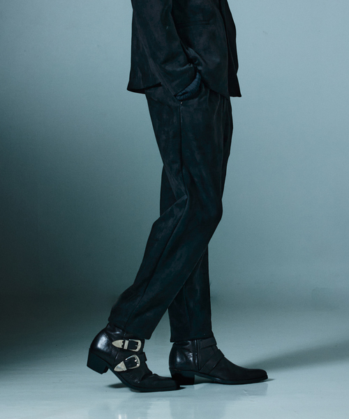 起毛ジャージで仕立てたテーパードパンツ【素材】きれいめでしっかりとした厚みのあるストレッチスエードを使用。ジャージー素材で抜群のストレッチが特徴的です。【デザイン】起毛感が際立つゆるやかなテーパードラインが特徴のスエードパンツ。きれいめなスタイルながらウェストはゴム仕様のため、リラックスして着用可能です。【コーディネート】同素材ジャケット(品番:02518082007)と合わせたセットアップスタイルがオススメ。