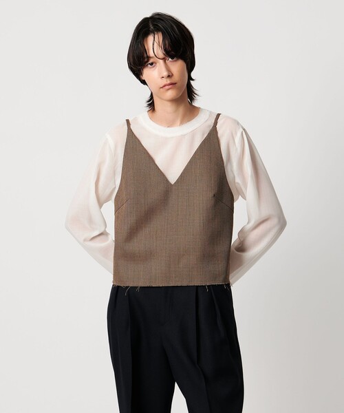 AEWEN MATOPH -W-素材・クオリティ・ディテールなど、より追求したハイエンドなラインをリリース■デザインベスト感覚でスタイリングに取り入れたい、ウール素材のキャミソール。上品な風合いの生地に、カットオフで仕上げた裾のラフな雰囲気が魅力です。ディープVネックに華奢な肩紐が女性らしく、マニッシュな生地とのコントラストをお楽しみいただける一着。後ろはヘルシーな背中開きで、ボタンがアクセントに。レイヤードを楽しみたいアイテムに仕上がっています。■素材ヘアライン柄とオリジナルチェック柄のウール素材を使用。生地に弾力とハリを加える加工を施し、上品で高級感がありながらドライタッチな風合いが魅力です。■コーディネートシャツやカットソーとのレイヤードがお楽しみいただけます。シンプルなスタイリングにさらりと取り入れていただくだけで、アップデートいただけるプラスワンアイテム。ジャケットインも映え、同素材のスカート・パンツ・キャミソールのご用意があり、セットアップで揃えていただくのもおすすめです。・同素材の他アイテムのご用意もございます。ジャケット 対象品番:87221440046スカート 対象品番:87241440046パンツ 対象品番:87141440046============================裏地:あり透け感:なし伸縮:なし光沢感:なしポケット:なしケア方法:ドライクリーニング============================<AEWEN MATOPH(イウエン マトフ)>より、新ライン「W(ダブリュー)」をスタート。「W(ダブリュー)」とは、WILLED(意思のある)、WIT(機知)、WISE(賢い)、WOMAN(女性)、W(ダブル ジェンダーレスに着ていただきたいという思い)の頭文字から名付けています。ネームタグも黒地にホワイトで<AEWEN MATOPH>と差別化し、素材・クオリティ・ディテールなどをより追求したハイエンドなラインとしてリリース。【注意事項】※この製品は、デザイン性を重視して企画しており、一部分、裁ち切り状態(切ったままの状態)にしてあります。そのため、着用や洗濯の繰り返しにより、裁ち切り部が徐々にほつれてきます。ほつれが気になる場合は、無理に引っ張らずに気になる糸をハサミで取り除いて下さい。この点をご留意の上、独特の雰囲気をお楽しみ下さい。※商品に「取り扱い上の注意書き」、「洗濯表示」がございます場合は、使用前に必ずご確認ください。※商品画像は、光の当たり具合やパソコンなどの閲覧環境により、実際の色味と異なって見える場合がございます。あらかじめご了承ください。※商品の色味の目安は、商品単体の画像をご参照ください。※画像の商品はサンプルです。実際の商品と色味、仕様、加工、サイズ、素材等が若干異なる場合がございます。店舗へお問い合わせの際は、全国のUNITED ARROWS各店舗まで下記の品名/品番をお申し付けください。品名:AMW W V/N CAMI 品番:87161440046