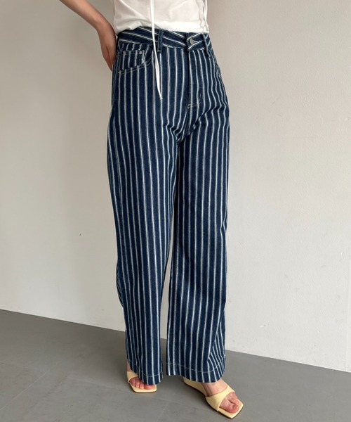 〈 FUULLY STUDIO 25SS COLLECTION 〉 〈 Design Point 〉 遊び心あるストライプ柄で仕上げたストレートデニム。 ややハイウエストデザインですっきり履けるようにサイズ感、 インパクトがありながらも大人っぽく着て頂けるシルエットに拘りました。 柔らかい素材にややストレッチが効いているので着用しやすいのも嬉しいポイントです。 〈 Styling 〉 シンプルなアイテムを選んであげるのが◎ 主役のパンツを引き立てるトップスを合わせて足元はミュールやサンダルで女性らしさを+してみて。 〈 Size 〉 S/M サイズ 〈 Detail 〉 コットン50% ポリエステル50% 柔らかめのデニムなので着用しやすいです。 透け感:なし 伸縮性:ややあり 裏地:なし ケア方法:ご自宅でお洗濯可能です。ネットに入れてドライ(おしゃれ着洗い)にてお洗濯ください。 ※濃色品は多少色落ちする可能性がありますのでお洗濯の際は、淡色のものとは別にお洗い下さい。 ※濃色品は漂白剤入り、または漂白剤成分のある洗剤の使用はお控えください。 ※照明の関係により、実際よりも色味が違って見える場合がございます。 ※商品に付いている商品表示とアテンションタグを ご確認の上、着用・お取り扱い下さい。 〈 FUULLY STUDIO 〉 -フーリィースタジオ- 「そぎ落としたクラシックをベースにフェミニンさとユーモアさの遊び心あるアクセントを加えた洋服で、 あなたを満たす一枚」をテーマに、キュートで愛おしさを表現する柄やカラー、シルエットを落とし込んだ洋服を提案するレディースブランド。 クラシカルでベーシックなアイテムとフェミニンなアイテムを融合させたスタイリングで、凛とした女性の中の愛おしさを表現しています。 〈 公式Instagram 〉 @FUULLY_STUDIO 新作アイテムの情報やおすすめ商品を随時UPしております。 是非チェックしてみて下さい。 ---------------------------------------------------- 〈 お買い物をよりお楽しみいただく為に 〉 ・商品のお気に入り登録 ♡をクリックして気になるアイテムをお気に入りに登録していただくと 完売カラーの再入荷や、ラスト1点の通知、セールの際の通知を受ける事ができます。 ブランドのお気に入り登録もご一緒にお願い致します。