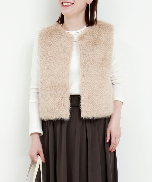 ◇25AW◇ MICO COULIER コーデが華やぐ、プラス1アイテムフェイクファーベスト ◆Point ・短毛で滑かなフェイクフォックスファーが上品&高見えするベスト ・ふわっと軽やかで、思わず触れたくなる肌ざわり ・ノーカラーですっきり、大人っぽい印象に ・フロントは見えないホック仕様でミニマルな仕上がり ・ポケット付きで実用性も◎ ・旬なレイヤードスタイルにぴったりのショート丈 ・グレーベージュとベージュ、洒落感のある絶妙カラー展開 ・羽織るだけで秋冬のおしゃれが完成する主役アイテム ・Tシャツやブラウス、ワンピースに重ねるだけで秋の旬スタイルが完成 ・シアーアイテムとのレイヤードでよりトレンドライクな着こなしに◎ ---------------------------------------------------------- 透け感:なし 裏地:あり 伸縮性:なし 光沢感:なし 洗濯:手洗い不可(ドライクリーニング) ---------------------------------------------------------- 気になる商品は、お気に入り登録がオススメです! クーポン情報、入荷情報が通知されるようになります ---------------------------------------------------------- ●お取扱い上のご注意● 末永くご愛用頂くために、アテンションタグを必ずご確認の上、着用又はお取り扱い下さい。 ※店頭及び屋外での撮影画像は、光の当たり具合で色味が違って見える場合があります。商品の色味は、スタジオ撮影の画像をご参照下さい。 ※商品画像に関しては出来る限り忠実に表示出来るよう努めておりますが、お客様がご利用のモニターの設定及び特性により、実際の商品と比較し色味に若干の誤差が生じる場合があります。 ※製品洗い加工の商品は、多少の歪み、シワなどが見られたり、風合いやサイズ等が1枚1枚異なります。汗や雨等で濡れた時や、摩擦により色落ちし、他の衣料を汚すことがありますので(特に濃色のもの)ご注意ください。