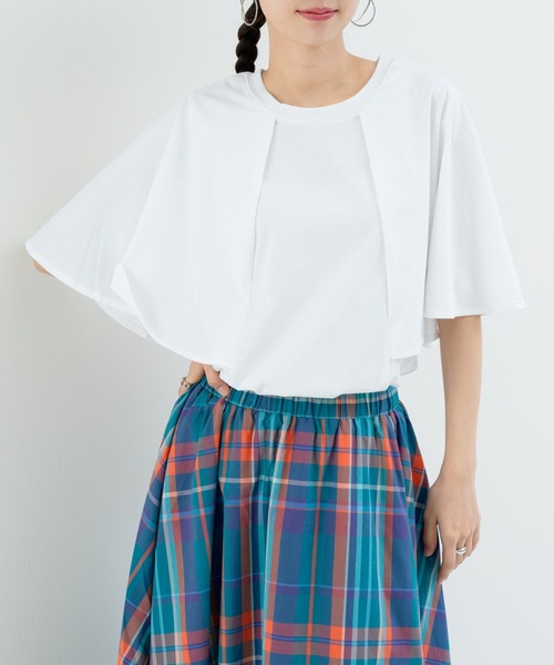 重ね着風デザインで差をつける主役トップス【ケープ風レイヤードが目を惹くデザインカットソー】■商品の特徴・肩から袖にかけてのケープ風レイヤードデザインが印象的・リラックス感のあるシルエットで着心地も抜群・1枚でサマになるデザインTシャツ■詳細説明シンプルながらも個性的なレイヤード風デザインが目を惹く、旬顔トップス。袖部分はケープのように肩を覆う設計で、動きのあるシルエットを生み出します。ストンと落ちるシルエットとミニマルなデザインで、大人のカジュアルスタイルにぴったりな1枚です。パンツスタイルはもちろん、スカートとも好相性で幅広い着こなしが楽しめます。■生地・素材感……………………透け感:なし伸縮性:ややあり生地の厚さ:普通生地の柔らかさ:柔らかめ裏地:なしポケット:なし……………………■素材・混率情報ポリエステル65% 綿35%■サイズ情報(cm)身丈:64cm 身幅:50cm 肩幅:37cm 天幅:21cm 袖丈:38cm■コーディネートテーパードパンツでスッキリとまとめたり、ワイドパンツでゆったりバランスを楽しんだりと着回し自在。足元はフラットシューズやスニーカーでカジュアルに仕上げるのがおすすめです。■お気に入り登録★《お気に入り登録》でお得な情報がいっぱい★・「商品のお気に入り登録」で再入荷通知や、ラストの通知、セール通知も受け取ることができます・「ブランドのお気に入り登録」で新商品や再入荷など、お得な情報を受け取ることができます!※商品画像は撮影時の光や角度により、実物の色味と異なって見える場合がございます※撮影はサンプル品を使用しており、表示のサイズ感も実物とは若干異なる場合もございますので、予めご了承ください※生産時期により色・素材・サイズ感など多少異なる場合がございます。予めご了承ください※他のキャンペーンにより、期間中に価格が変動する場合があります※セールは予告なく終了させていただく場合もあります