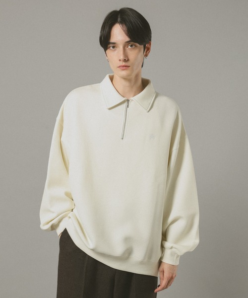 着心地抜群なふんわりとした生地が特徴のダンボール生地 ピグメント加工を施し、1枚でお洒落な印象に ーーー ■ポイント 古着のような加工感がこなれた印象を魅せるスウェットです。 ポロシャツのようなハーフジップアップデザインを使用しているので、上品な印象にも仕上がります。 身幅を大きくとったボックスシルエットは、一枚でこなれたアウトラインに。 シンプルな無地デザインなので、レイヤードスタイルやアウターのインナーとしても使いやすいです。 ■素材 ポリエステルとコットンの混紡素材を使用。 ピグメント加工を施し、トレンドのヴィンテージライクな雰囲気に。 ふんわりとした肌触りのダンボール生地は、軽量で快適な着心地です。 ハリと立体感のあるシルエットに仕上がるので、上品な印象を与えます。 ====== ■参考サイズ M:~175cm L:175cm~ ====== ーーー ■スタイリング シャツやTシャツをインナーに入れたレイヤードスタイルがおすすめです。 首元や裾からチラリと指し色/柄をするだけでお洒落なスタイリングに。 シンプルに合わせたい方は、首元からネックレスを見せるだけでもこなれた雰囲気に仕上がります。 ゆったりとしたオーバーサイズなので、太めのワイドパンツとも相性抜群です。