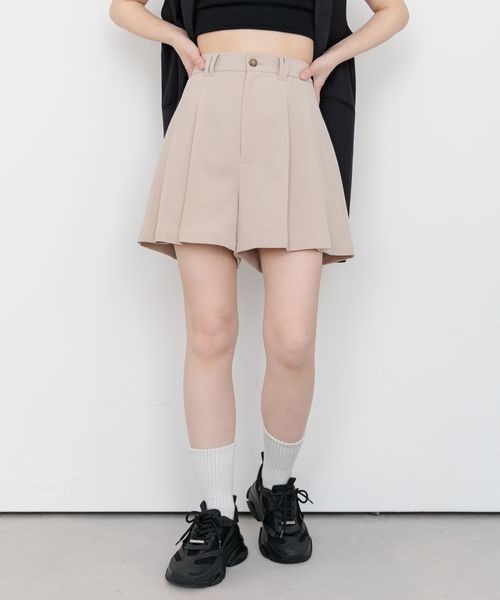 \これからの季節にぴったりな、ドライタッチの素材を使用したプリーツショートパンツ/しなやかな肌触りと、軽くサラッとした風合いがポイントです。カジュアル過ぎず、きれいめにも履けるので、幅広いシーンで活躍!フロントのタックプリーツが、裾に向かって程よく広がるシルエット。深く入ったプリーツは美脚効果も期待できます。イージーケア素材を使用しているので、シワや型崩れしにくく、ご家庭の洗濯機でお手入れできるのも魅力です。〈注意事項〉※こちらのアイテムは、値札に表示されている価格と販売価格に1円の差があります。システム上発生してしまう差異となるため、予めご了承ください。※・サンプルにて撮影をしておりますので、実際の商品とは素材や仕様・加工・サイズ等が若干異なる場合がございます。・モニター・環境等により実際の商品と色味が多少異なって表示される場合がございます。予めご了承をお願いいたします。・撮影環境により、光の当たり具合で色味が違って見える場合があります。あらかじめご了承下さい。▼気になるアイテムは《お気に入り登録》がおすすめです!完売カラーの再入荷情報、セール情報、ラスト1点の通知を受け取ることができます!▼《ブランドのお気に入り登録》で新商品や再入荷などのお得な情報をいち早くお知らせします。※ご注文いただいた予約商品のお届け時期の確認は、注文履歴ページより行えます。