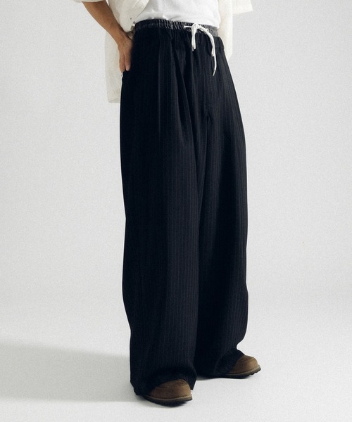 ------------------------------------------------------【Perushu/ ペルーシュ】毎週(木)に新作をリリース新作情報はInstagram、TIKTOK公式アカウントからチェック!↓【@perushu_official】------------------------------------------------------ゆるシルエットで魅せる、ピンストライプスラックス。ウエストは二重に重ねたような「ダブルウエストデザイン」で、腰まわりにアクセントを◎ギャザー&ウエスト紐を採用し、リラックス感のある穿き心地ながらも、センタープレスと上品なストライプが程よくきちんと感を演出。Tシャツ、ノースリーブトップスや開襟シャツなど、カジュアルアイテムとの相性も抜群。モードにもストリートにも振れる、万能な一本となってます。ナップサックやバケットハットなど小物でアレンジするのもおすすめでニットポロシャツやシアーブラウス、サマージャケットなどキレイ目アイテムにもはまり、テイストレスなスタイルで楽しめます!同色のトップスと合わせてセットアップ風に着るのも◎チビTと合わせて、ダブルウエストデザインを見せてあげてもおしゃれです。ーーーーーーーーーーーーーーーー透け感:なし裏地:なし伸縮性:ややり光沢感:なし生地の厚さ:普通ーーーーーーーーーーーーーーーー-推奨サイズ-S…~166cmM…~173cmL…174cm~-Perushuブランドコンセプト-韓国ストリートからインスパイアされたWEB限定ブランド!アート、レトロ、ユニーク、トレンドなどをテーマにグラフィックアイテムを中心に展開しています!※サイト上のカラー名と、お届け商品に記載されているカラー名が異なる場合がございます。※ご覧いただく環境により、実物と色味が異なって見える場合がございます。ご了承ください。【お買い物をよりお楽しみいただくために】▼商品のお気に入り登録(ハートマークをクリック)完売カラーの再入荷通知や、ラスト1点の通知、セールの通知も受けることができます。▼ブランドのお気に入り登録新商品や再入荷など、いち早くブランドのお得な情報を受け取ることができます。