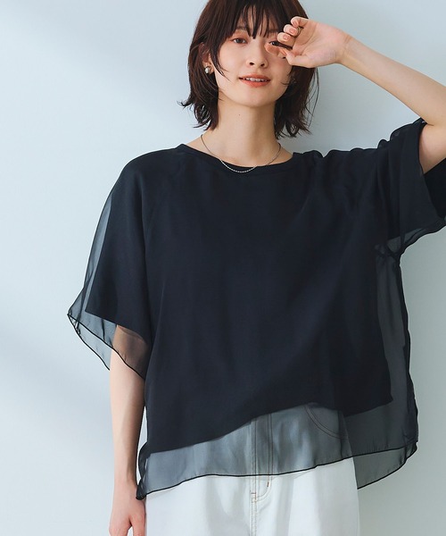 1枚でサマになる 気張らずに着れる華やかトップス ■エブ楽とは? Everyday 「楽」に着れるシリーズ。 365日毎日着たくなるような、着心地もお手入れも楽ちんな味方服。 《嬉しい機能》 1.ウォッシャブル 汗をかいても、汚れてしまっても安心。デイリー使いにぴったり。 【デザイン】 ・着るだけで華やかな印象のシフォンレイヤードTシャツ。 ・シンプルなデザインの中に微光沢のあるシフォン素材を重ねることで、コーディネートに取り入れやすいのにこなれた雰囲気にしてくれる優秀アイテム。 ・首元は詰まりすぎないようデザインし、抜け感をプラス。 ・余裕のあるリラックスシルエットで体型カバーにも◎ 【コーディネート】 ・合わせるアイテムでオンオフ使える、着回し力が嬉しい! ・きれいめなスラックスと合わせてオフィスカジュアルコーデに。 ・デニムやカジュアルな印象のサロペットと合わせるものおすすめです◎ 【サイズ展開】 Mサイズ Lサイズ LLサイズ モデル身長:166cm 着用サイズ:Mサイズ 【洗濯・取り扱い】 洗濯:洗濯可 アイロン:可 乾燥:タンブル乾燥不可 ------------------------------------- 透け感:なし(シフォン部分あり) 伸縮性:あり 厚み:普通 裏地:なし 洗濯:可 -------------------------------------- ※撮影時のライティング、ご覧になっているモニター・PC環境により実際の商品と色味が異なって見える場合がございます。ご了承の上お買い求め下さい。