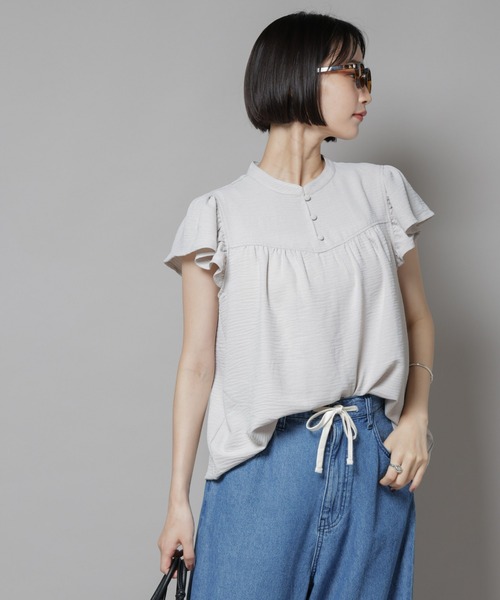 【2025 AW】 NANO universe(ナノ・ユニバース) 『程よく甘さのあるデザインが大人フェミニンに着映え◎』 上品さとフェミニンさを兼ね備えた、フリルスリーブが大人可愛いブラウス。デニムなどのカジュアル感のあるボトムと合わせたり、同素材のパンツと合わせてセットアップコーデもおすすめです。 ■デザイン ・大人の女性が上品に着こなせる、ほど甘デザインのブラウス ・腕を華奢見えさせてくれるフリルスリーブ ・オンオフ問わずどんなシーンにも着映えるデザイン ■素材 ・表面にシボ感があり、清涼感のある素材 ・サラっと軽い柔らかな素材感 ・洗濯機使用可 ■カラー展開 ・ON/OFFで合わせやすいブラック、ベージュ ・鮮やかで明るいブルー ■コーディネート ・デニムなどのカジュアル感のあるボトムと好相性◎ ・同素材のパンツと合わせてセットアップコーデもおすすめ ■シリーズ ・673-5227303 イージードロストワイドパンツ(セットアップ可) ■サイズ感 ・スタイルアップにも効果的な身体のラインを拾わないサイズ感 ■取扱方法 ネットを使用してください。色物(特に濃色)と白物・淡色物は分けて洗ってください。濡れたままの放置や、長時間の浸漬はしないで下さい。洗濯後は形を整えて直ちに干してください。あて布を使用してください。釦にはアイロンを当てないで下さい。 ※サンプルにて撮影、採寸を行う為、実際にお届けする商品と仕様やサイズが異なる場合がございます。予約時は生産の都合上、お届け予定時期が前後する場合もございますので、予めご了承下さい。 ※光の当たり具合や撮影環境により色味が異なる場合がございます。正しい色味はスタジオ画像の色味をご参照ください。 ※こちらの商品は、アウトレット店舗での取り扱いになります。直接店舗へお問い合わせの際はアウトレット店舗へお願い致します。プロパー店舗での取り扱いはございませんので、ご了承ください。 ※サイズスペックは、ブランドの採寸方法で表記している場合がございます。予めご了承ください。 ▼商品のお気に入り登録 お気に入りアイテムの再入荷や残り1点の通知を受け取ることができます。 ▼ブランドのお気に入り登録 新作アイテムの入荷や人気アイテムの再入荷、タイムセールやクーポンなど、 いち早くブランドのお得な情報を受け取ることができます。