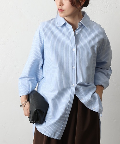 【爽やか縦ラインでスマートに。ストライプリラックスシャツ】 ゆったりとしたリラックスシルエットに、爽やかなストライプ柄をプラスしたオーバーシャツ。 縦ラインを強調するストライプが着るだけでスタイルアップ効果を発揮し、こなれた印象を演出します。 ドロップショルダーとたっぷり身幅で肩肘張らない着心地ながら、きちんと感も忘れない絶妙なバランス。 ヒップが隠れる丈感で体型カバーも叶い、ボタンを留めてシャツとしても、羽織りとしても活躍◎。 デニムやスラックス、ワイドパンツなど様々なボトムと相性が良く、オンオフ問わず長くご愛用いただける一着です。 【商品ポイント】 ・縦長効果抜群のストライプ柄 ・ゆったりリラックスシルエットで快適な着心地 ・羽織りにもシャツ使いにも便利な2WAY仕様 【同素材シリーズ】 CWA1052104A0014 ストライプクロップドシャツブルゾン ---------------------------------------------------- ■商品特徴 洗 濯 方 法 :洗濯機洗い可(弱) 裏 地 :なし 透 け 感 :なし 伸 縮 性 :なし 光 沢 感 :なし 生地の厚さ:普通 ---------------------------------------------------- ■素材 綿75%, ポリエステル25% ---------------------------------------------------- ※着用、お取り扱いの際は、商品についている品質表示とアテンションタグを必ずご確認下さい。 ※商品タグに記載されている商品名がWEBでの表記名と異なる場合があります。 ※実際の商品と仕様、加工、サイズが若干異なる場合がございます。 ※照明の関係により、実際よりもやや明るく見える場合がございます。 またパソコンなどの環境により、若干製品と画像のカラーが異なる場合もございます。予めご了承くださいませ。 【お気に入り登録】してお得な情報をCHECK!! ・「商品のお気に入り登録」で再入荷通知や、ラストの通知、セール通知も受け取ることができます。 ・「ブランドのお気に入り登録」で新商品や再入荷など、お得な情報を受け取ることができます。