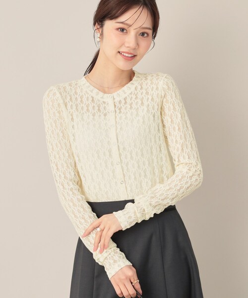 【デザイン】細やかなストレッチ性のあるフラワーレースを使ったデザインカーディガン。リングドット釦をあしらっており、羽織りとしてはもちろんプルオーバーとして着用もおすすめです◎■サイズ表示について※バイイング商品のため下げ札サイズ表記とワールドサイズ表記が異なります。製品寸法をご確認くださいませ。ワールドサイズコード38=製品サイズ表記M※照明の関係により、実際よりも色味が違って見える場合があります。また、パソコン・スマートフォンなどの環境により、若干製品と画像のカラーが異なる場合もございます。モデル情報:身長166cm B80 W62 H86 着用サイズ:38店舗へのお問い合わせ商品番号:508-34014●製品寸法:38:着丈56cm B84cm 袖丈69cm 肩幅31cm備考: