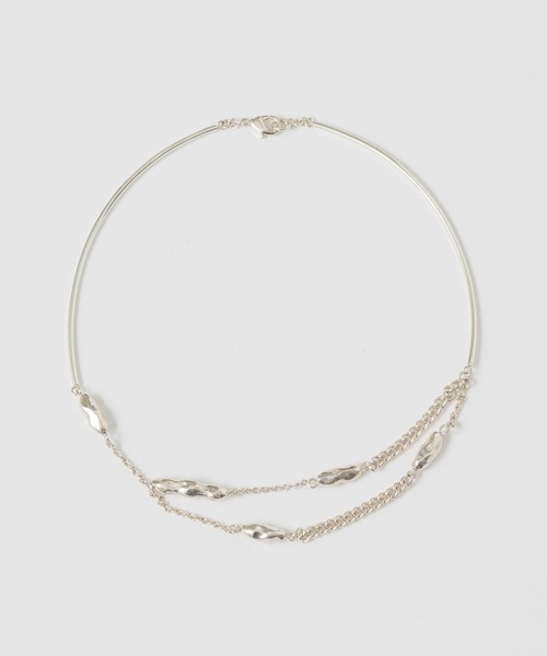 種子をイメ―ジしたパーツが付いたアシンメトリーデザインのチョーカーネックレスです。細めの丸線とチェーンの切り替えにランダムについたパーツが印象的なデザインで、シンプルなトップスに合わせて頂くだけで洗練された雰囲気になるアクセサリーです。▪️point・肌に優しいニッケルフリーメッキ・日本製・巾着付き▪️detail・肌に優しいニッケルフリーメッキ金属アレルギーの方にもお楽しみいただけるよう、アレルギーの原因とされるニッケルをほぼ含まずメッキ処理を施したアクセサリーです。※ 必ずしもアレルギー反応が出ないということではございませんので、お肌に敏感な方は慎重にご購入下さいませ。loni のアイテムはsilver925 or 18KGメッキを使用しています。メッキ製品にはどれも寿命があり、使用環境(アルコールや手洗いなど)によってメッキが剥げやすくなります。使用後は柔らかい布で汗や水分を拭き取り、空気に触れて酸化しないようジッパー付ポリ袋や付属の巾着に入れて保管することで美しい状態を長く楽しめます。▪️ loni とはおだやかに、力強く、そして可憐に生きる植物をテーマに、自然と目を惹くアクセリーを展開します。ブランド名にもなったloniceraの花言葉は絆。loniのアクセサリーをつけておしゃれをすることで人と人との繋がりや、自分自身との絆を深めてほしいという想いを込めています。 “ お気に入り登録 “ でお得な情報が! ・「 商品のお気に入り登録 」で再入荷通知や、ラスト1点のお知らせ、セールのお知らせも受け取ることができます。・「 ブランドのお気に入り登録 」で新商品や再入荷など、お得な情報を受け取ることができます。ぜひご登録ください◎※ご注文いただいた予約商品のお届け時期の確認は、注文履歴ページより行えます。