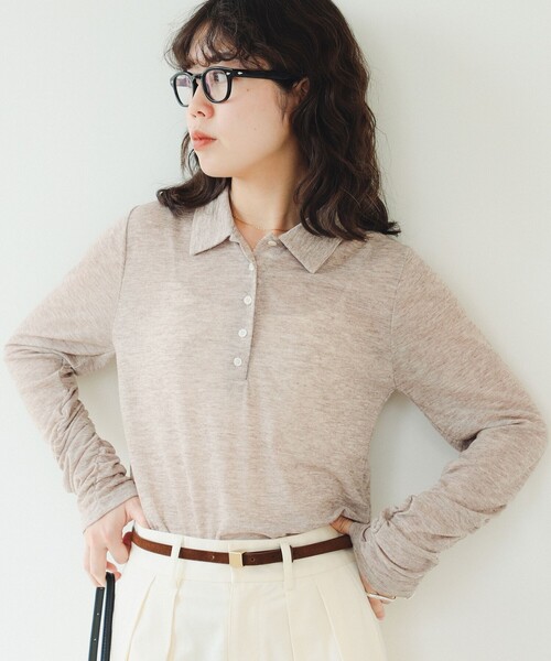 トレンド感あるポロニット■デザインほんのりと透けるニット素材のロングスリーブトップス。Tシャツ感覚で着用できるため、季節の変わり目や日差し対策、冷房対策にもぴったりです。■コーディネート暑さの残る時期から1枚で着られ、ひと足先に秋を感じさせるアイテム。シンプルにデニムと合わせてもサマ見えします。■ディテールポロ襟と、アクセントのフロントボタンがポイント。袖口にはゴムシャーリングを施し、ふんわりと優しい雰囲気に。■素材柔らかく、肌触りの良いシアーニット素材。薄手で透け感があり涼やかな印象です。■ケア方法洗濯可(詳細は商品についている品質表示ラベルをご覧ください)【GREY・BEIGE】Model:H167 B81 W61 H87 Size:ONE SIZE【DARK BROWN】Model:H164 B76 W60 H89 Size:ONE SIZE※光の当たり具合やパソコンなどの閲覧環境によって、実際の色味と異なって見える場合がございます。予めご了承ください。※商品の色味は商品単体で撮影した画像をご参照ください。◆お気に入り登録のおすすめ◆気になる商品には「お気に入り」登録がおすすめです!登録していただくと再入荷のお知らせやセール通知など、商品の最新情報が届きます。またマイページでいつでも確認が可能になります。お得な情報が届くこともありますので、是非ご活用ください。