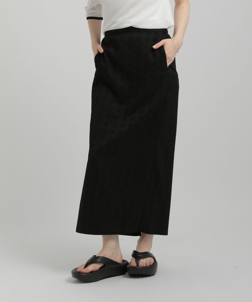 立体感のある素材のナロースカートです。 ■DESIGN ・形は使いやすいシンプルなナロースカート ・ウエストゴム仕様で快適な履き心地 ・動きやすさと女性らしさを両立するバックスリット入り ・ベージュカラーには透け対策としてペチコートが付属 ・晩夏を意識したカラーリングなので秋まで使いやすい ■FABRIC ・軽やかで涼しく履ける薄手の素材 ・柄見えする生地が無地でもスタイリングに立体感を与えます ■STYLING ・ロゴTやタンクトップと合わせて夏のカジュアルミックススタイルに ・ナローなのでオーバーサイズのTシャツやシャツを合わせてもバランス◎ ※サンプルにて撮影をしておりますので、実際の商品とは仕様や加工・サイズ等が若干異なる場合がございます。 ※屋外の光や照明の当たり具合で、実物と色味が異なって見える場合がございます。詳細画像の色味をご確認ください。 なお、商品の色や質感を出来るだけ忠実に再現するよう心掛けておりますが、パソコンなどの環境により、実物と若干異なる場合がございます。 ※写真を許可無くコピー・転用することは固くお断りします。