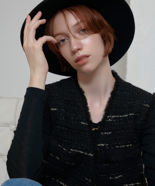 【allureville 2025 autumn&winter】 イタリアのテキスタイルメーカー「GIOLICA」社の凹凸感のあるMIXツイードで仕立てた一枚。フリンジやグログランを施し、より特別感のある仕上がりにしました。ボウタイブラウスやタートルニットをインナーに着て頂き、デニム等でカジュアルダウンさせて楽しんで頂くコーディネートがおすすめです。 まだ暑い時期はタンクトップなどを合わせても◎。 同素材のシリーズでノノーカラージャケット(20252010060)とラップスカート(20252011120)も展開しております。 ラップスカート合わせのセットアップスタイルもおすすめです。 【スタッフコメント】 丈感がヒップ位まであるので着やすく、冬にはゆったり目のアウターの中に着て頂けます。 お仕事やきちんとしたシーンにはブラウスにパンツ・スカート合わせ、オフの日にはTシャツにデニム合わせでキレイ目カジュアルに、シンプルなニットワンピースの上などにも。 ※照明の関係により、実際よりも色味が違って見える場合がございます。 またパソコン・スマートフォンなどの環境により、製品と画像のカラーが異なる場合もございます。 予めご了承ください。