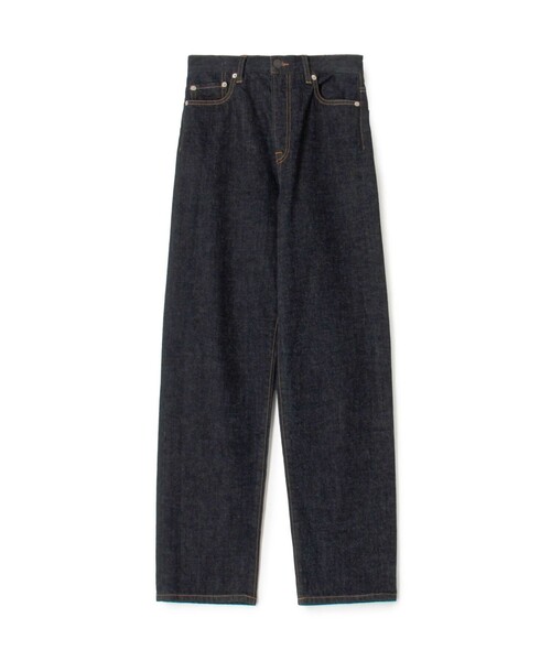クラッシックなデザインに、女性が穿いたときにきれいに見えるシルエットを追求したストレートデニム。 高めに設定したウエスト位置から曲線を描くことによって、太ももや腰回りはカバーしつつ脚長効果も期待できるシルエットです。 ワンウォッシュの美しいインディゴブルーカラーがタイムレスなスタイルを完成させます。 生地には、12オンスの岡山・クロキ社製「リングオールドデニム」を採用。 デニム原料の綿繊維をしっかりと紡ぐことで、糸目が細かく滑らかな肌触りを実現。 また、膝の曲げ伸ばしによる伸縮にも強く、膝抜けしにくい耐久性も兼ね備えています。 フロントボタンには、エディションオリジナルの刻印が施されたネオバーを使用し、細部にまでこだわりが光ります。 ※商品の色味は、商品単体または素材アップ画像をご確認ください 2025AW商品 店舗にお問い合わせの際は、下記の商品番号をお申し付けください。 商品番号:34-04-54-04205 ※※インディゴデニムについて※※ インディゴ染料を使用した素材を使用しています。 染色の特性上、新しいうちは特に色落ちしやすく、他のものと擦れ合うと色移りします。 新しいうちは白や淡い色の服・バッグ・ベルト・椅子など身の回りの品への色移りにご注意下さい。 その他、お取扱い上の注意をよくご確認の上、ご使用をお願いします。