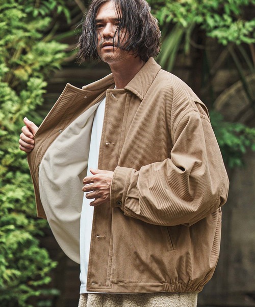 175cm B90-W73-H89 靴26.5cmのモデルがMサイズを着用。 太畝のコーデュロイブルゾン。 ゆったりとした丸みを帯びたルーズシルエット。 裏地には肌触り柔らかいエコファー生地を貼り付け、防寒性をプラス。 ※着用画像と商品単体画像で色が異なる場合がございます。 ※商品単体画像を実物により近づけております。
