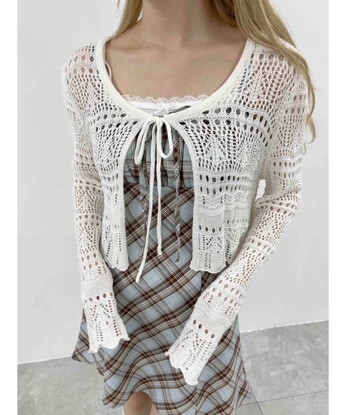 往年人気のクロシェ編みカーディガン 今年らしくョート丈にアレンジして、トレンド感のあるシルエットに! ゆるっとした着心地はコーデがさみしい時や何かプラスしたい時のアクセントに。 エアコンなどの肌寒い時の持ち歩きにも◎ 長めの袖はフェミニンな印象をプラスしてくれます。 ▼便利なお気に入り登録▼ 商品のお気に入り登録で、再入荷の通知・ラスト1点・お得なセールの通知を受け取ることができます。 ブランドのお気に入り登録で、新商品や再入荷など、さらにお得な通知を受け取れます。 《Attention》 ・撮影はサンプル品を使用しており、実際の商品とは仕様や加工・サイズ等が若干異なる場合がございます。 ・撮影場所や照明の照射・角度、お使いのモニター環境により色味や仕様、加工、カラーが若干異なる場合がございます。 ・商品によっては1〜3cm程度の採寸誤差がある場合がございます。 ・移染等防止のため水や汗で濡れたまま放置することは避けて頂き、濃色アイテムは単体でのお洗濯をお願い致します。 ・素材臭がある場合は陰干しをお願いいたします。 ・アテンションタグを必ずご確認の上ご使用下さい。