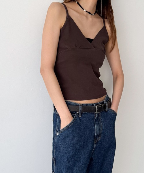 デザインクロスデザインがポイントのカシュクールキャミソール。素材身体に沿うシルエットながら伸縮性があり、ストレスフリーな着心地です。コーディネートトップスとして1枚で着るのはもちろん、Tシャツの上から合わせてレイヤードアイテムとしても◎カジュアルからフェミニンまで、幅広いコーデに合わせていただけます。-------------------------------------生地の厚さ:厚い〇〇●〇〇薄い伸縮性:あり透け感:なし裏地:なし光沢:なし-------------------------------------取扱い・蛍光増白剤が入っていない洗剤をご使用ください。・クリーニングネットをご使用ください。・濃い色と白 ・淡色物は分けて洗ってください。・洗濯で多少縮むことがあります。洗濯後はすばやく形を整えて干してください。タンブラー乾燥はお避けください。・アイロンの際は当て布をご使用ください。・着用時の汗や摩擦により、他の衣類や鞄などに色移りすることがありますので、淡色系との着合わせはご注意ください。・摩擦や引っかけにご留意ください。※取り扱い及びお手入れ方法については、商品についている取扱表示、洗濯表示にてご確認下さい。※照明の関係により、実際よりも色味が違って見える場合があります。またパソコン・スマートフォンなどの環境により、若干製品と画像のカラーが異なる場合もございます。※商品の色味は、商品アップ画像をご参照ください。