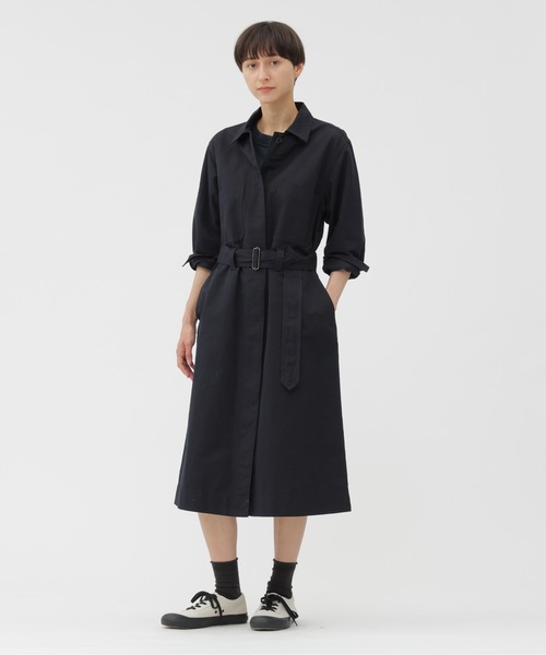 和紙とコットンを織り合わせた、軽やかで独特な質感のドレス。アウターのようなしっかりとした肉感を持ちつつ、和紙によるペーパーライクな風合いと軽さが特長。パッカリングによって生まれる立体的な表情が、素材の奥行きを際立たせた仕上がり。作業着のオーバーオールから着想を得たデザイン。スラントポケットや太めの比翼前立て、セルフベルトなどの実用的なディテールを取り入れ、カジュアルなムードにまとめた一枚。※こちらはMHL.SHOP・オンラインショップ限定の商品です。※こちらはウィメンズの商品です。▽お気に入り登録<商品のお気に入り登録>完売カラーの再入荷通知や、ラスト1点の通知、セールの通知も受け取ることができます。<ブランドのお気に入り登録>新商品や再入荷など、いち早くブランドの情報を受け取ることができます。