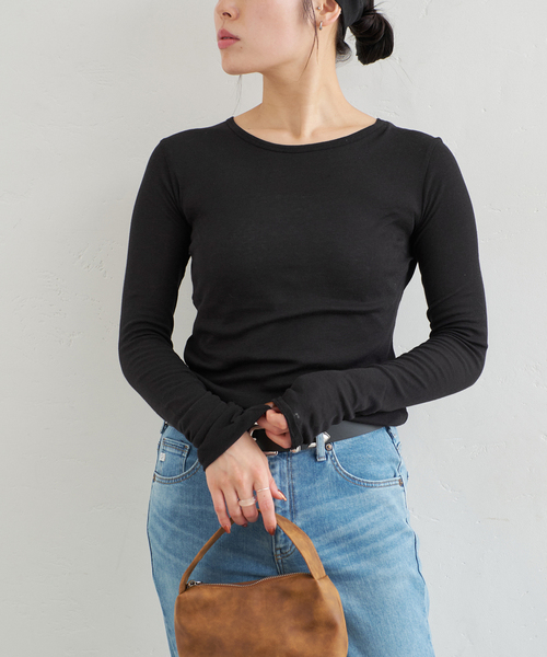 【2025AW】 U by SPICK&SPAN シンプルなカットソー。 やや袖丈を長めに設定し、袖口をクシュっとさせて着るのが◎。 さらっとして柔らかく、しっとりとした薄手の素材なのでシーズンレスで活用していただけます。 一つ持っているとコーディネートに便利な万能トップスです。 ********************** 透け感:あり 裏地:なし 伸縮性:ややあり 光沢感:なし 生地の厚さ:薄手 ********************** 【U by SPICK&SPAN/ユー バイ スピック&スパン】 賢く、わがままにお洒落を楽しみたい 現代の女性達へむけて・・・ #One Sensual #Two Miles #Three Contrasts 大切にしたい3つのKEYワードを軸に、幅広いSTYLEを提案します。 ※取り扱いについては、商品についている品質表示でご確認ください。 ※こちらの商品はU by SPICK&SPAN店舗での取り扱いになります。 直接店舗へお問い合わせの際は、U by SPICK&SPAN各店舗までお願い致します。 U by SPICK&SPAN新宿店 U by SPICK&SPAN池袋店 ※Spick & Span(広島店)にて一部商品のお取り扱いがございます。 ※照明の関係により、実際よりも色味が違って見える場合があります。 またパソコン・スマートフォンなどの環境により、若干製品と画像のカラーが異なる場合もございます。 ※商品の色味は、商品アップ画像をご参照ください。 着用スタッフ身長157cm 着用サイズ:フリー 詳細画像着用スタッフ身長162cm 着用サイズ:フリー 本体:手洗い可能