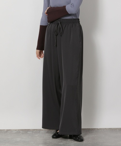 足先に向かってやや細くなるストレートシルエットのイージーパンツ。もも回りや腰回りにもゆとりがあり、ウエスト紐+ゴム使用なので着脱しやすいのもポイント。落ち感のある素材なのでラフな穿き着心地のアイテムです。【素材】二重織りの張り感と落ち感のあるダブルクロス素材感。肌触りの良い素材なのでシーズン長くお使いいただけます。【スタイリング】きれい目からカジュアルまでスタイル選ばず合わせやすい1本です。ウエストの紐もポイントになるのでタックインスタイルもおすすめ。