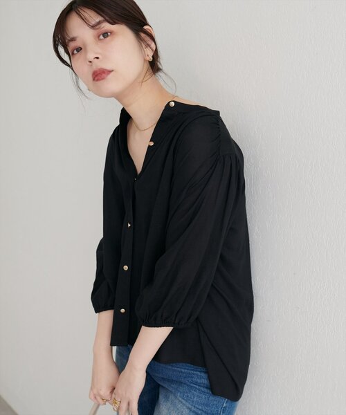 【2025AW natural couture】 麻混ギャザーブラウス ■Design ふんわりとしたシルエットと、麻混素材ならではのナチュラルな風合いが魅力のギャザーブラウス。 首元のギャザーと薄金ボタンが、さりげない華やかさをプラス。 オフィスからカジュアルまで、幅広いシーンで活躍してくれる優秀アイテムです。 ■Styling マーメイドシルエットやフレアライン、Iラインのスカートにウエストインして、 大人レディな印象のスタイリングに仕上げるのはもちろん、デニムにさらっとウエストアウトで合わせて、足元にパンプスを持ってきてもきまります。 ボタンを開けてスキッパー風や、衿を抜いたり、フロントだけインしたりと、様々なアレンジが楽しめます。 ジャケットやカーディガンなど羽織りアイテムと組み合わせれば、ロングシーズンお召し頂けます。 ■Fabric 麻混のさらっとした生地感で涼やかにお召頂けます。 ========================= 透け感:オフややあり 裏地:なし 伸縮性:なし 光沢感:なし 生地感:さらっとした生地感 ========================= ※着用、お取り扱いの際は、商品に付いている品質表示とアテンションタグを必ずご確認ください。 【お気に入り登録でお得な情報がいっぱい】 ・「商品のお気に入り登録」で再入荷通知や、ラスト1点の通知、セール通知をいち早く受け取ることができます。 ・「ブランドのお気に入り登録」で新商品や再入荷など、お得な情報を受け取ることができます! ※店舗の入荷時期は商品によって異なります。 店頭の在庫状況につきましては各店舗にてお問い合わせください。 ※撮影時の光の関係で、画面上の画像と実際のお色とでは若干の色差が生じる可能性がございます。 また、ご覧いただいているモニター画面や、お使いのブラウザによっても、お色の違いがございますことをあらかじめご了承くださいませ。 20250725 2025AW_natu 25AW